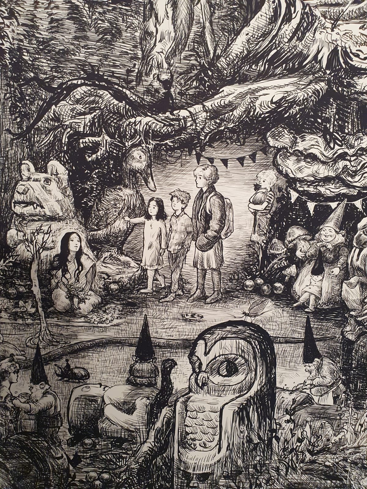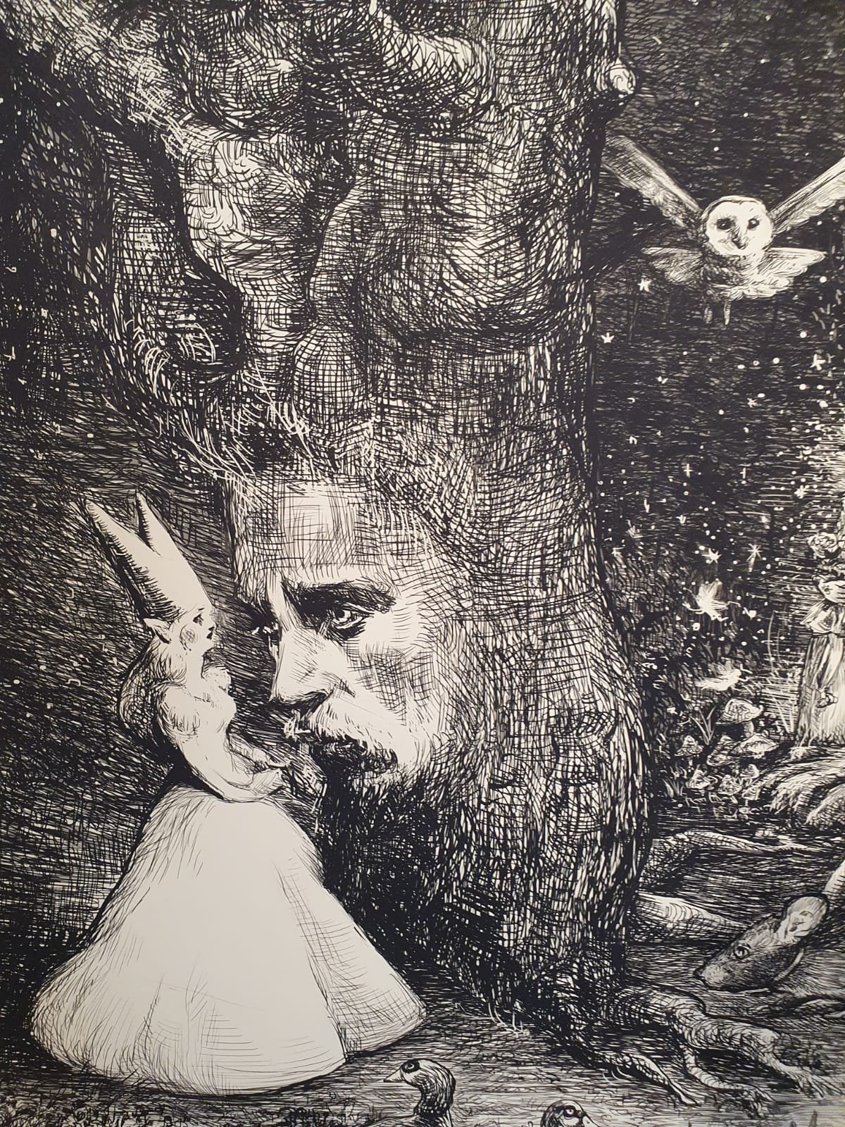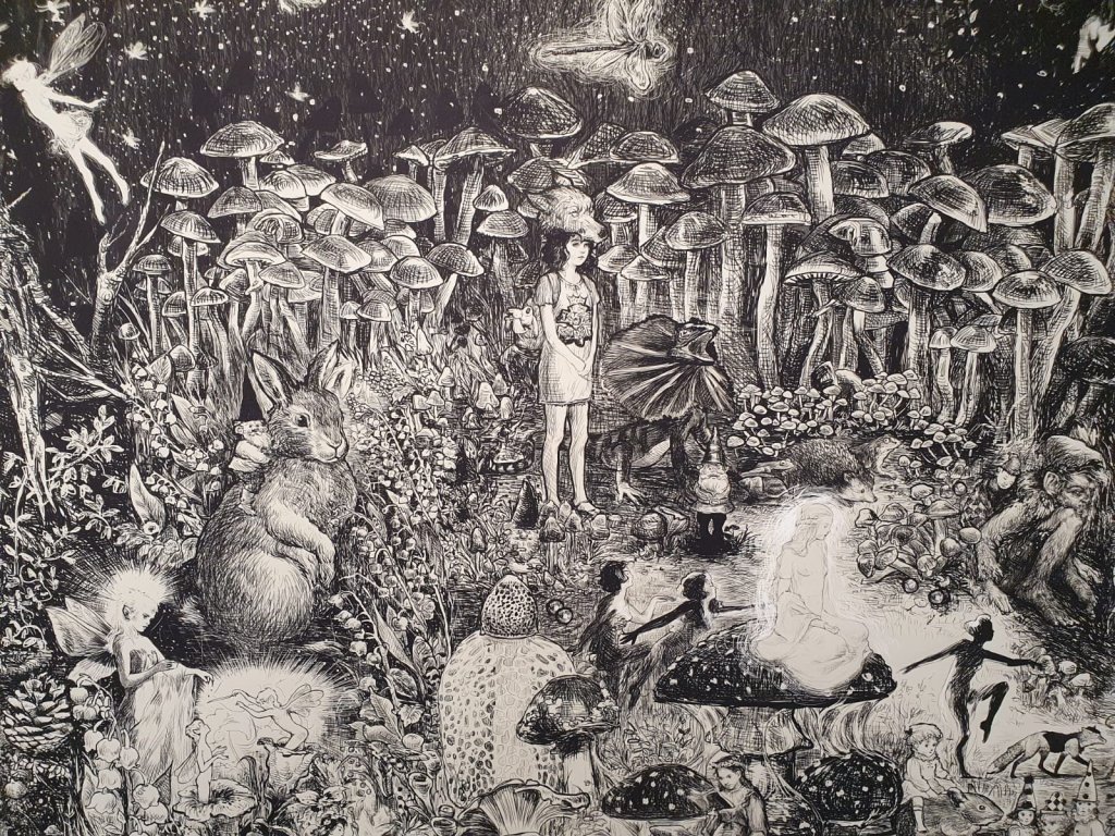 אם יש לכם זמן לתערוכה אחת בלבד אל תחמיצו את ״פעם ועץ ביער״ (אוצרת: אביטל וכסלר) בגלריה ביתא. האמנים איתמר פלוגי (פאלוג׳ה) ועפרה אייל בראו בחלל הגלריה הלבן עולם אפל, סוריאליסטי ומרהיב, המציג עבודות עץ לצד איור גדול מימדים המתפרש על שתי קירות, ושולח את המבקרים לטריפ ארוך בו יפגשו ״יצורי כלאיים מיתולוגיים המופיעים בתרבויות שונות, באגדות נשכחות או מוכרות״, כפי שמסבירים בגלריה.