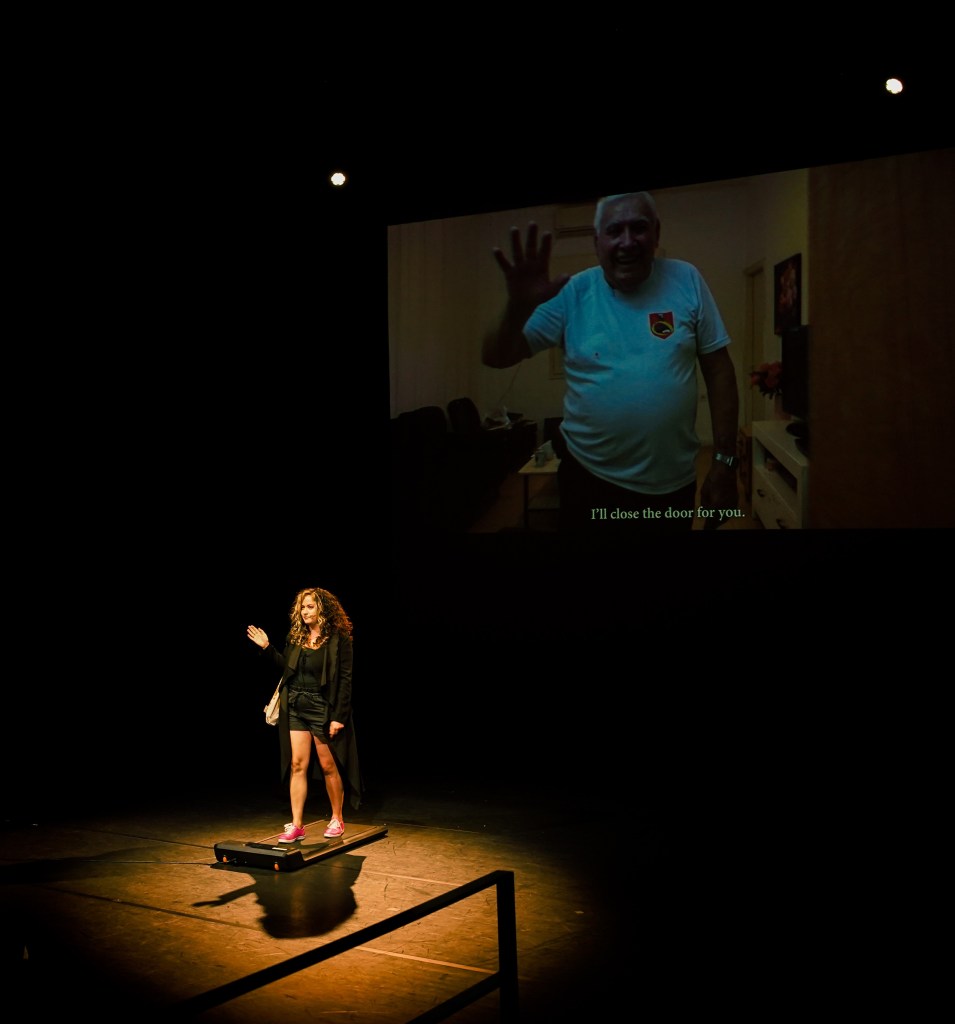 ״אני אוהבת לומר שהמופע הוא שיטוט קולנועי על הבמה, כיוון שכך הוא החל – בשיטוט אקראי ברחובות ואז עבר, בשלום יחסית אני מקווה, לבמה. הוא מן יצור כלאיים שנע בין ז׳אנרים, ומה שקורה כשבמה פוגשת יצירה דוקומנטרית: אני על הבמה בהליכה סיזיפית על הליכון ומאחור מוקרנים פני הגברים שלכדתי במצלמה. אני מדברת אליהם, איתם וגם לקהל, וכך מייצרת לעצמי הזדמנות שנייה בהווה לשוחח עם העבר. אגב, חשוב לי להדגיש: זה מופע מלא הומור! קורה שבתחילת המופע אנשים לא היו בטוחים אם מותר לצחוק – אז כן! מותר ואף רצוי גם לצחוק בו״.